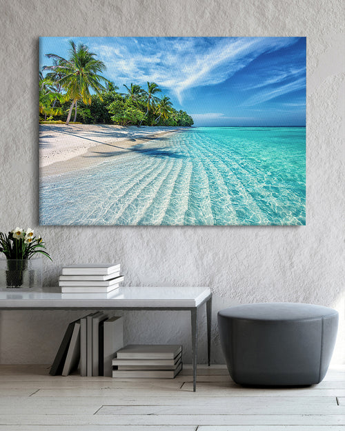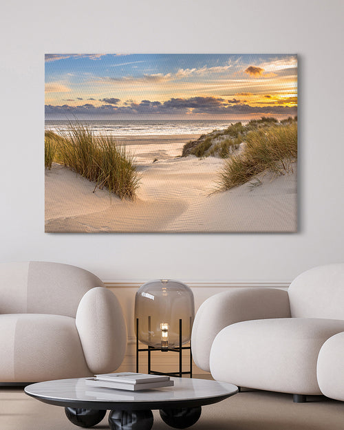 Barfuß im Strandkorb, blauer Himmel, Aperol im Sonnenuntergang. Der letzte Traumurlaub mit den Besties war pures Sommerglück? Dann hänge dir dieses Gefühl jetzt als Strand Leinwandbild an die Wand. Urlaub für jeden Tag!