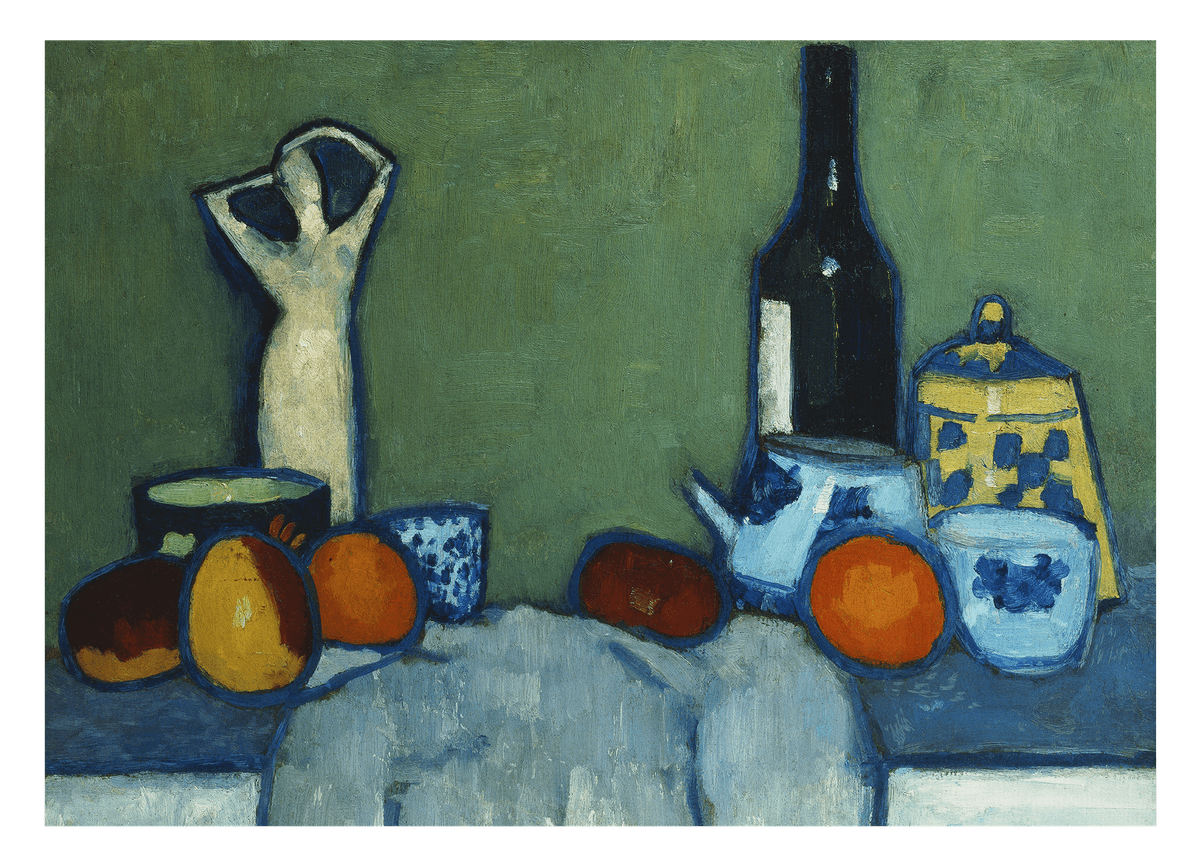 Alexej von Jawlensky - Stilleben mit Früchten, Figur, Flasche