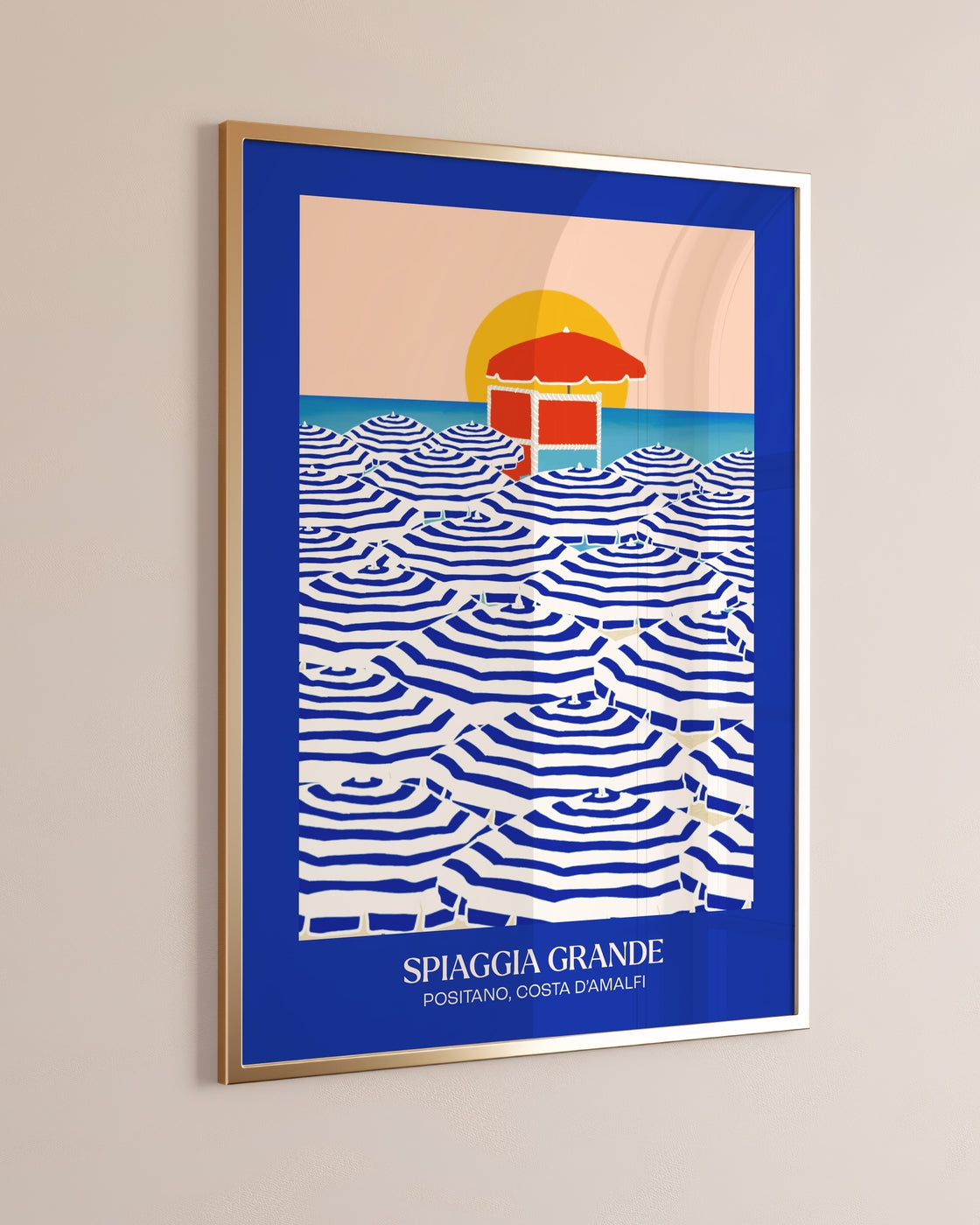 Amalfi Design - Blaue Sonnenschirme in Spiaggia Grande