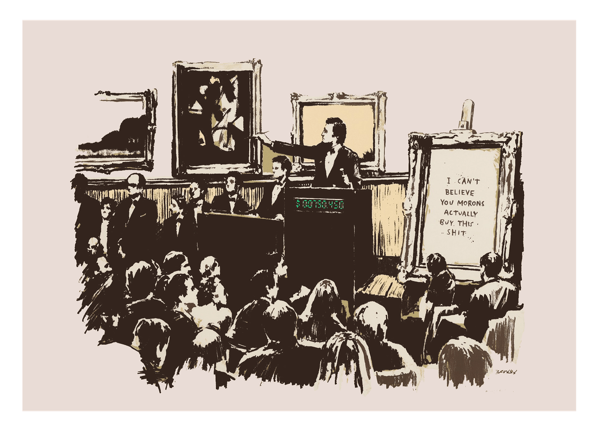 Auktion Konsum-Kritik, Street-Art Banksy - Moderner Kunstdruck Canvas - Perfekt als Geschenk, Wohnzimmer, Inneneinrichtung Deko