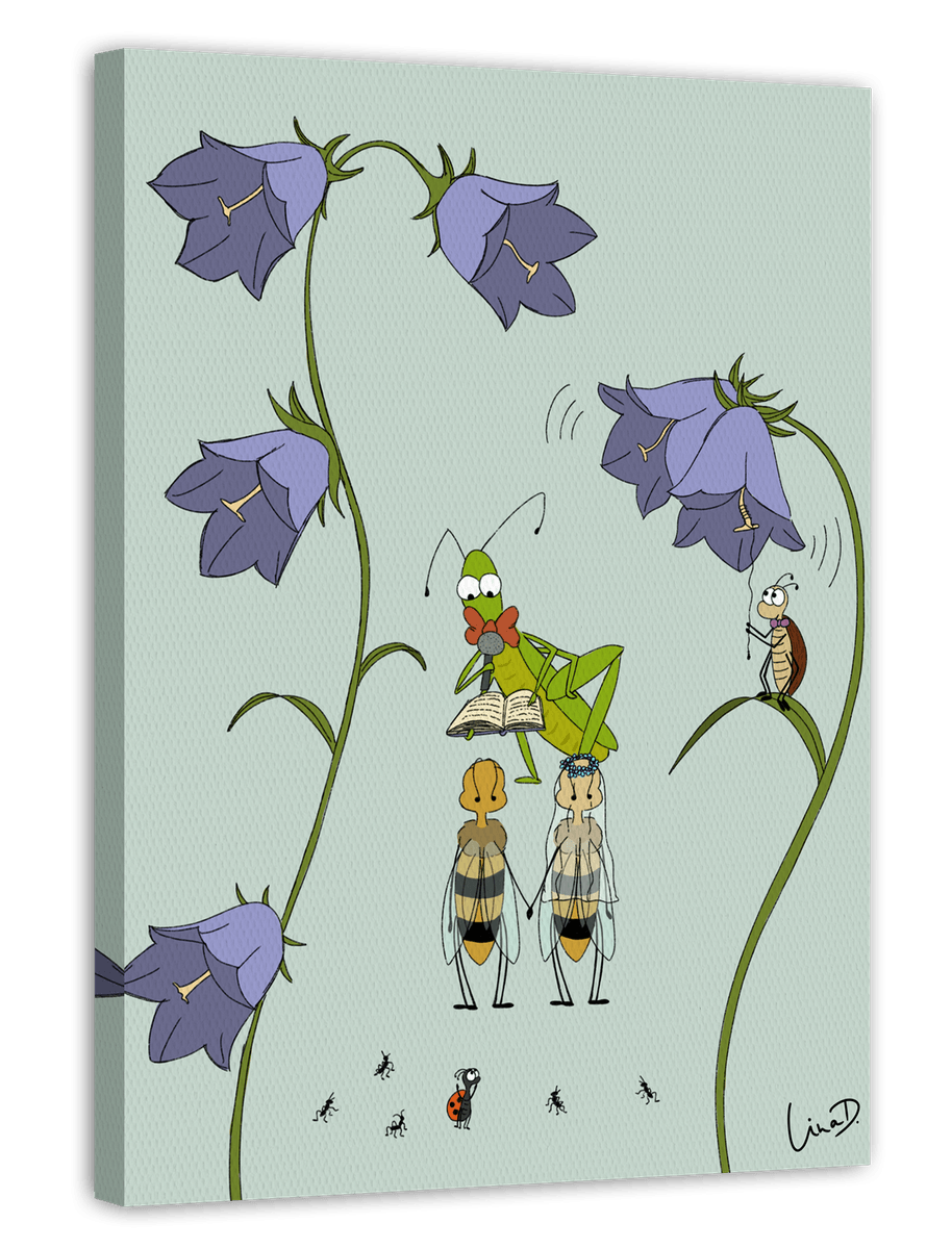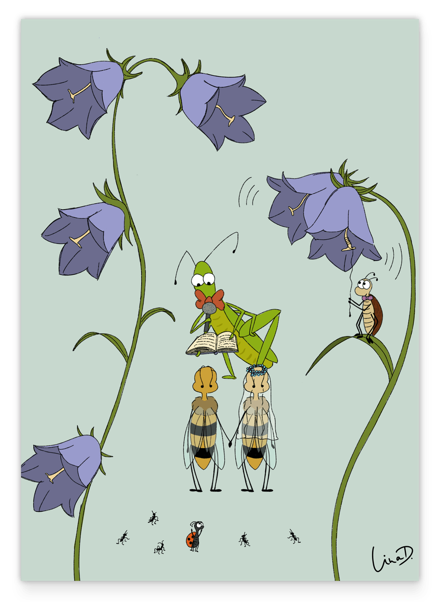 Bienenhochzeit - Süße Tierzeichnung, Natur-Illustration für das Kinderzimmer