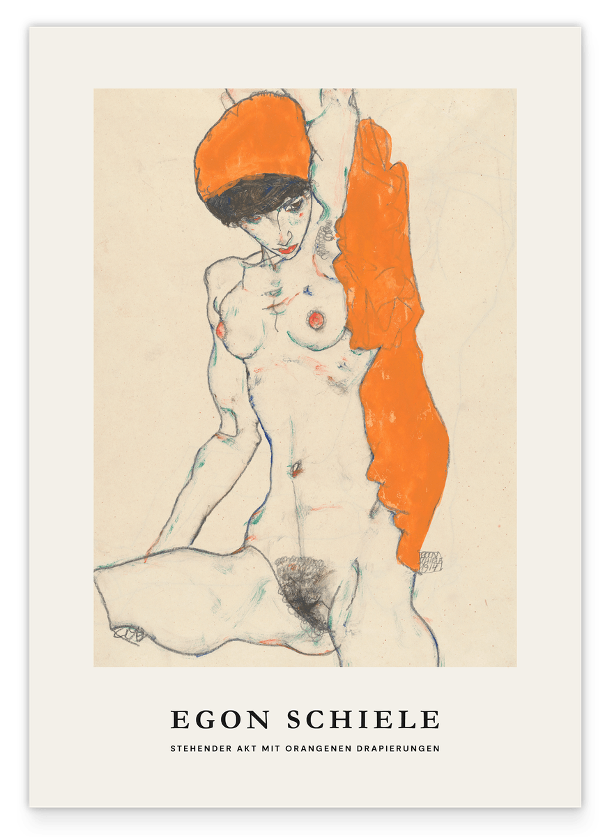 Egon Schiele - Museum-Poster I Stehender Akt mit orangenen Drapierungen