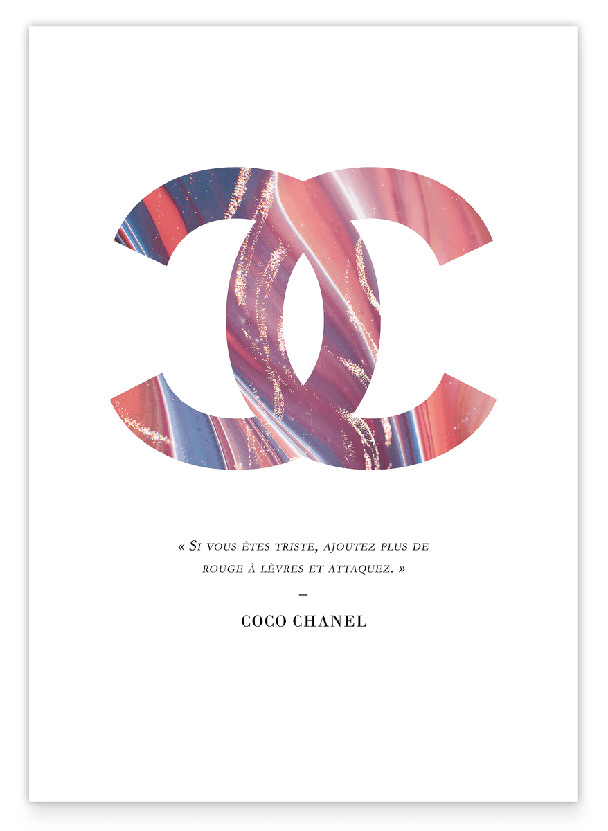 Französisches Zitat von Coco Chanel - Mode Logo in Pastellfarben