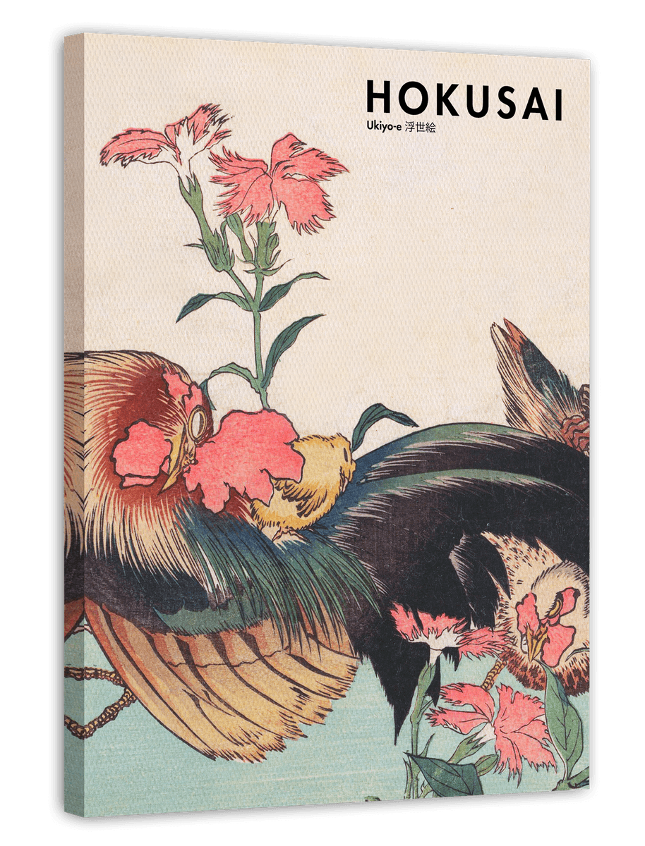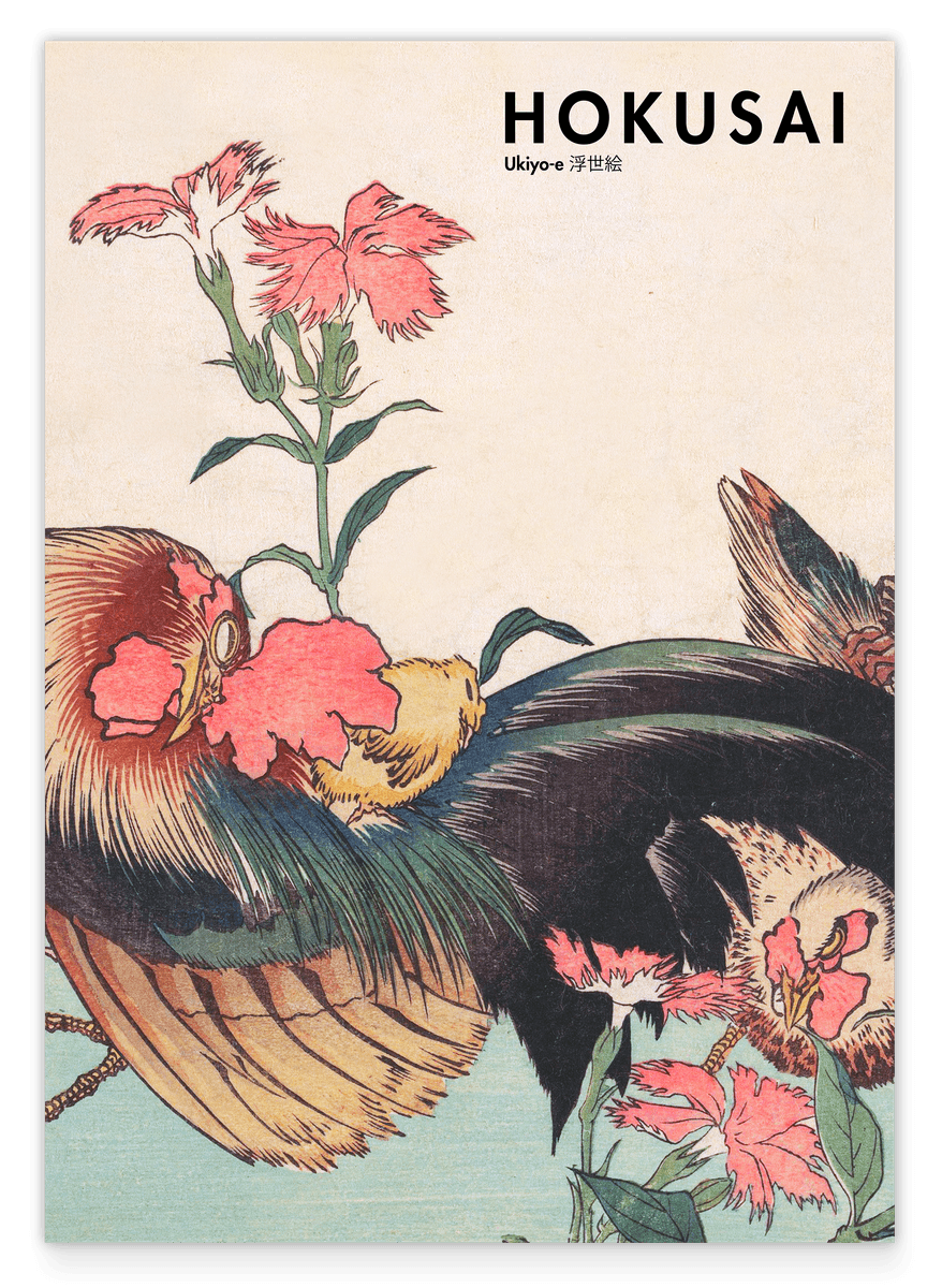 Katsushika Hokusai - Museum-Poster II Hahn, Henne und Nadeshiko