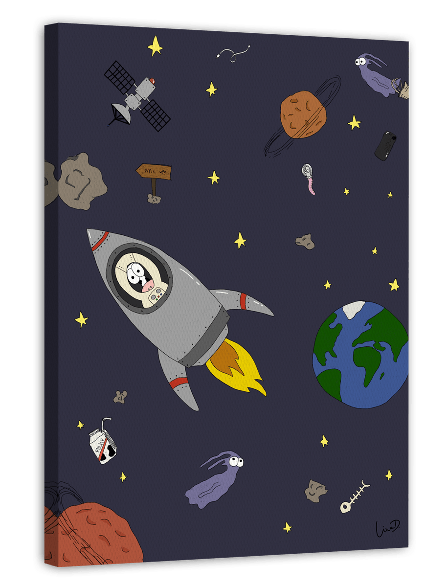 Kuh im Weltall - Süße Zeichnung, Raumfahrt-Deko für das Kinderzimmer