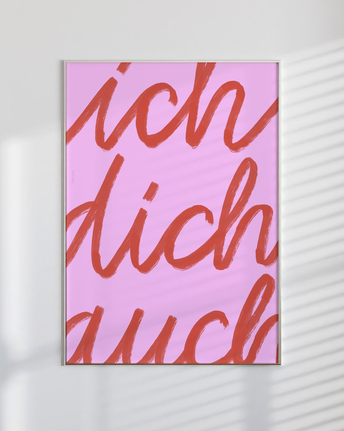 Liebe - Ich dich auch - Sprüche Typografie in Pink