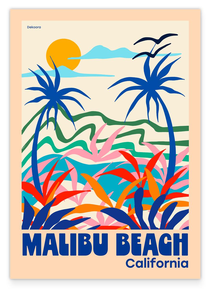 Malibu Beach California - Buntes Urlaubsbild mit Palmen