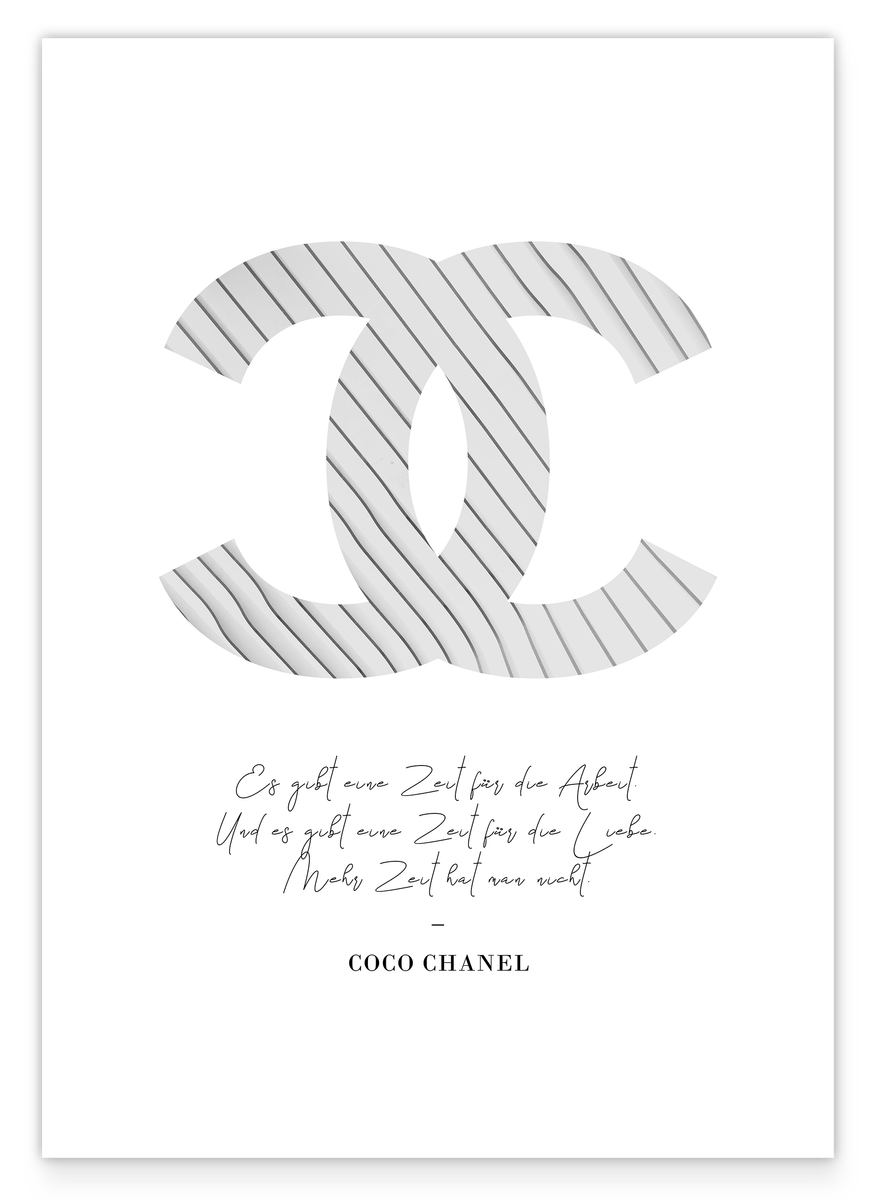 Mode - Coco Chanel Zitat mit weißem Nadelstreifen Stoff