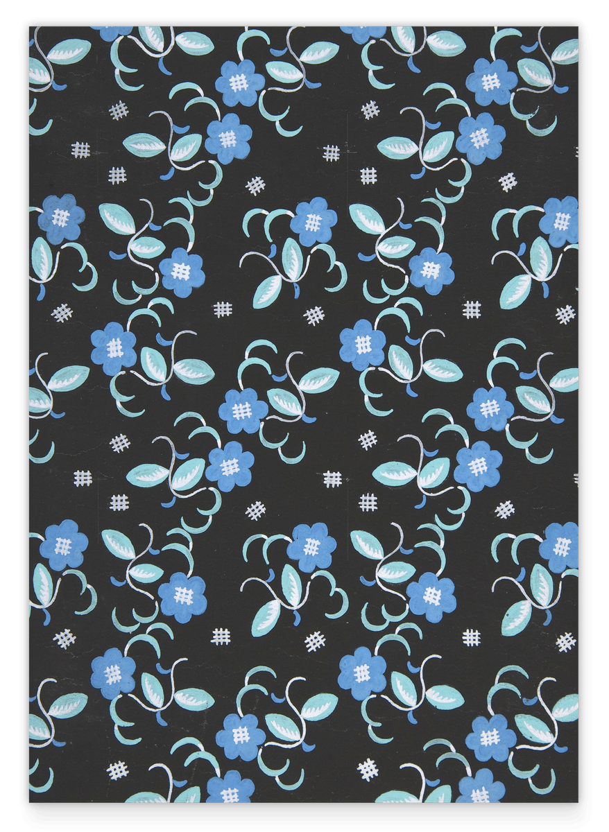 Paul Poiret zugeschrieben - Stoffdesign mit blauen Blumen & Ranken