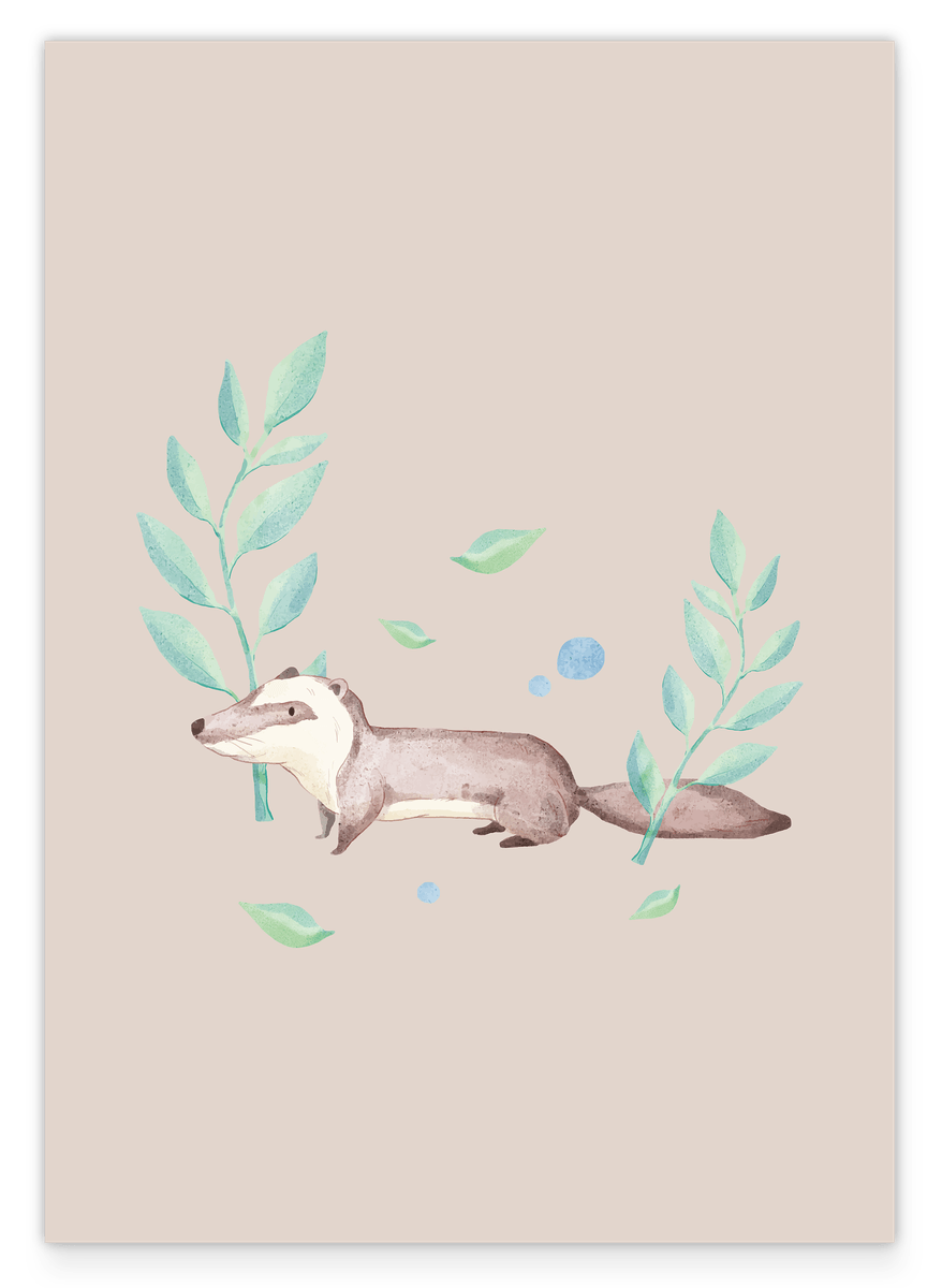 Süßer Dachs im Wald, Wasserfarben-Zeichnung, Kinderzimmer Deko Beige, Illustration für Kinder