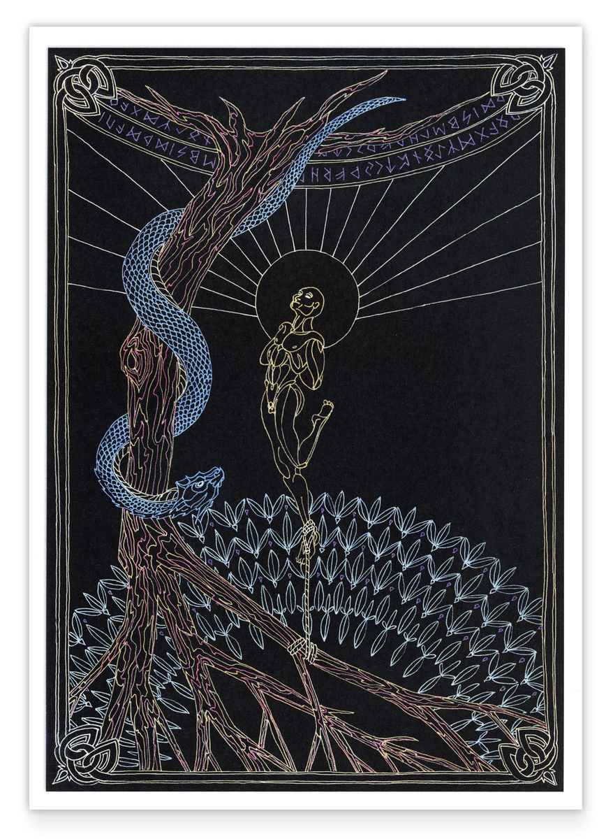 Tarotkarte - The hanged Man - "Der Gehängte" am Baum mit Schlange