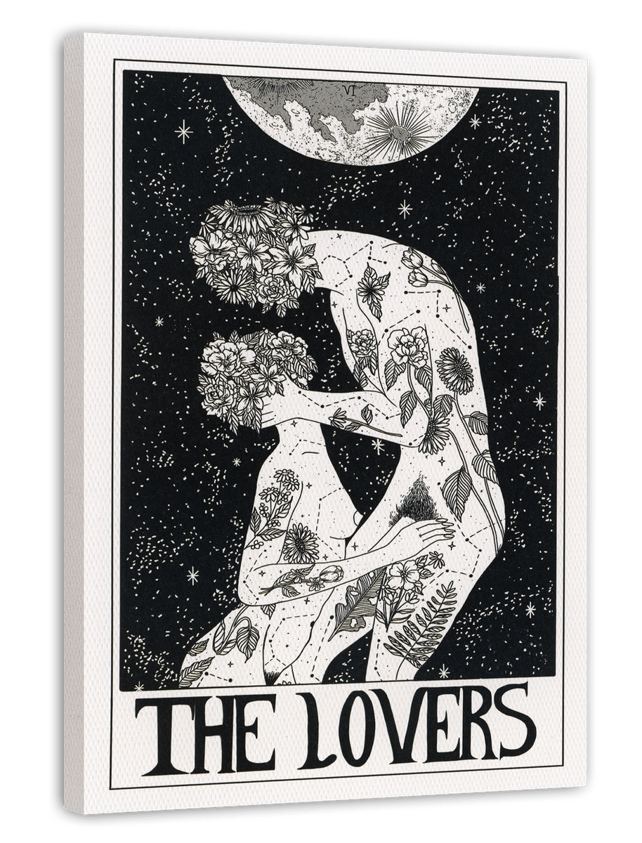 Tarot Zeichnung - The Lovers - Boho Zeichnung in Schwarz-Weiß "Die Liebenden"
