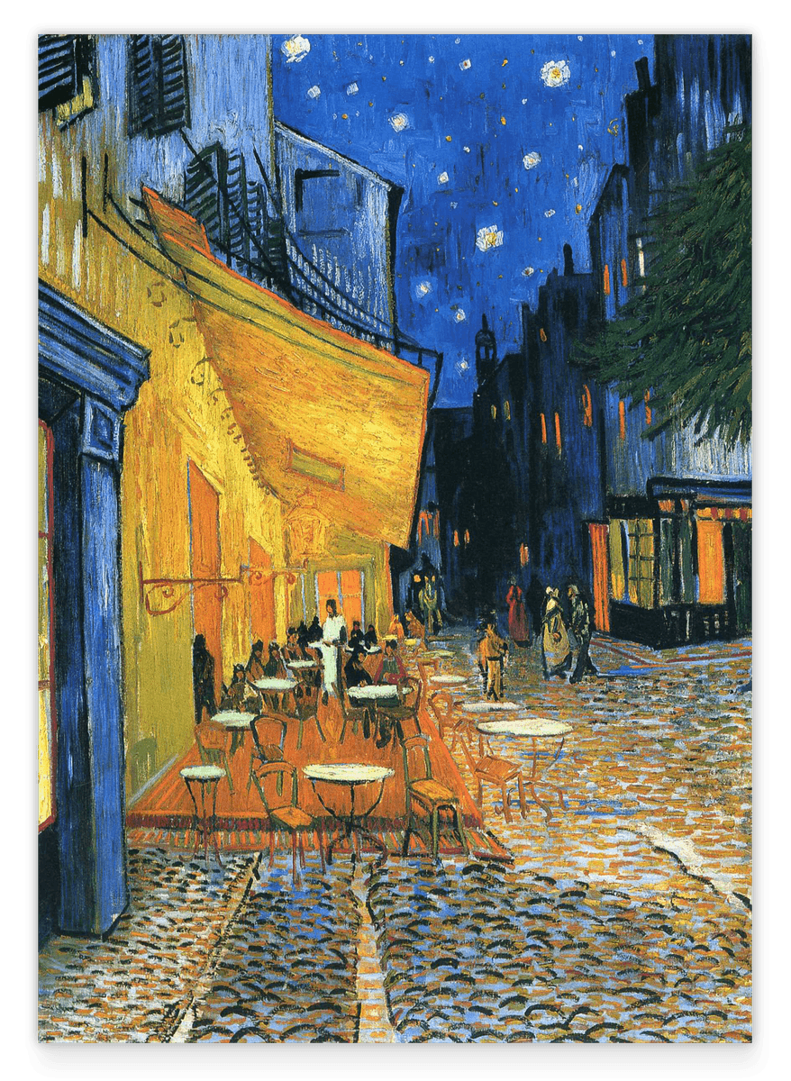 Vincent van Gogh - Nachtcafé/Nachts vor dem Café an der Place du Forum in Arles (1888)