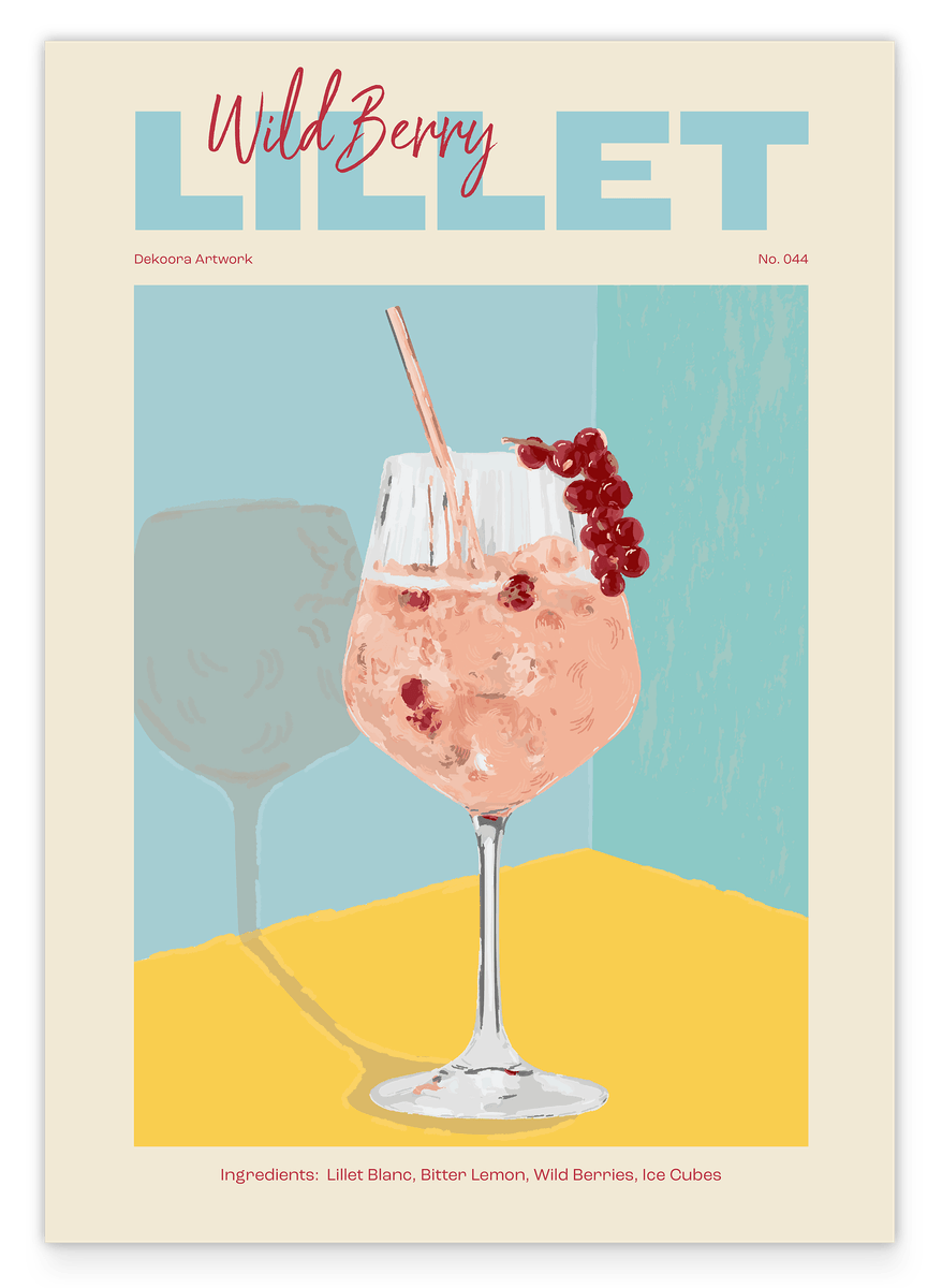 Wildberry Lillet - Cocktail im Glas mit Schriftzug
