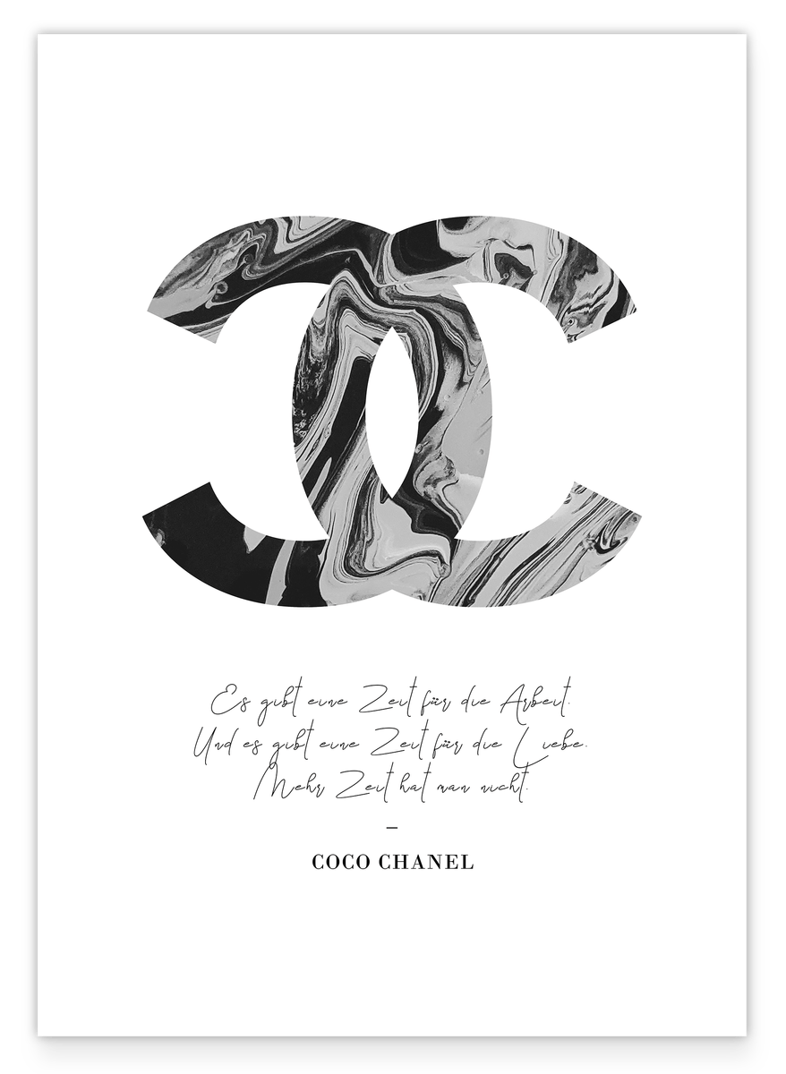 Zitat von Mode-Ikone Coco Chanel - Logo in Grau-Schwarz-Weiß